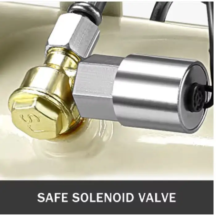 Vgrajeni so še elektromagnetni ventil za varnost ob izklopu, dva manometra, separator vode in varnostni ventil. To ni igrača. To je profesionalno orodje.